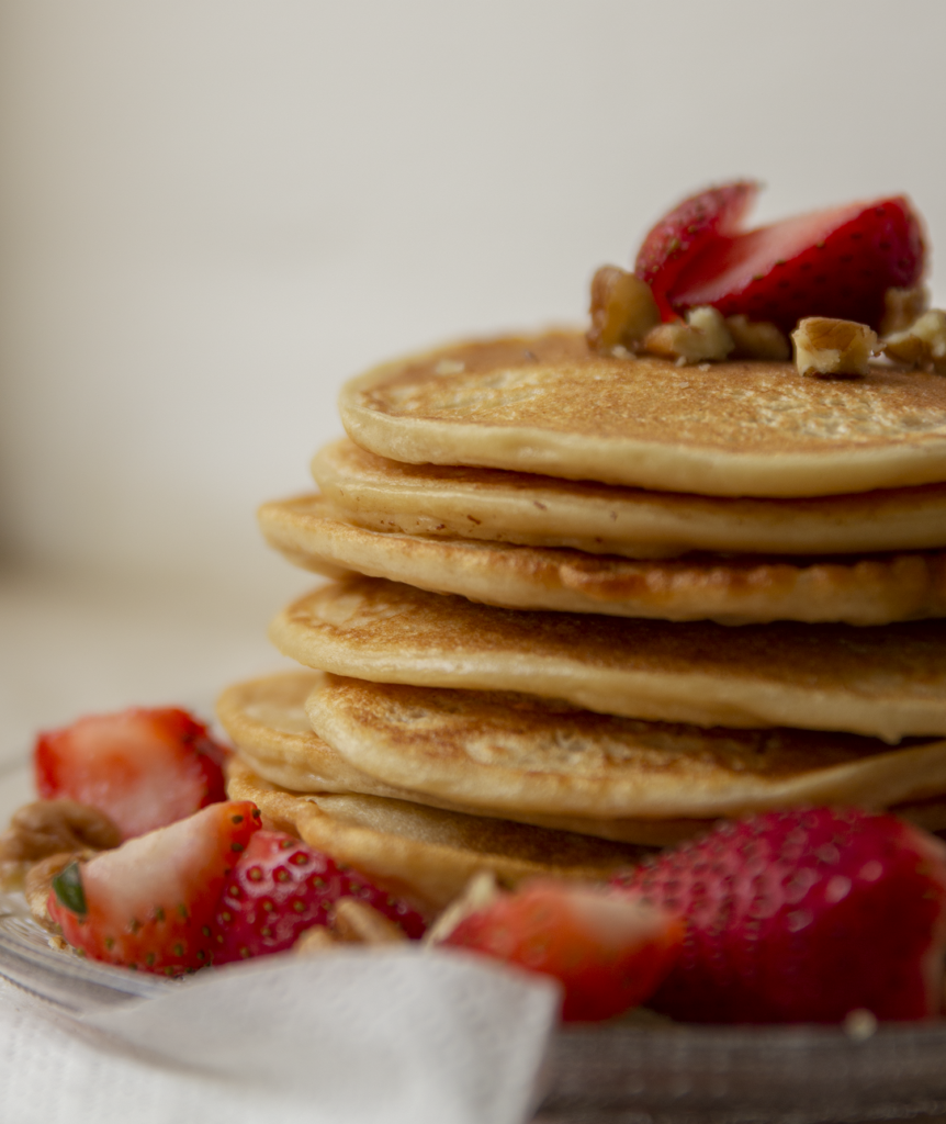 המאכל הכי כייפי להתחיל איתו את הבוקר עבורי זה פנקייק. יש המון מתכונים ודרכים שונות להכין פנקייק, אבל את המתכון הזה אני מאוד אוהבת. הוא עשוי מקמח כוסמין לבן שמקנה טעם זהה לטעמי לקמח לבן רגיל, הוא לא מכיל יותר מידי חומרים, מועשר בחלבון וגם אין צורך להשתמש באף "תחליף" ביצה. הסיבה שאין צורך היא בגלל השילוב של הקמח עם האבקת חלבון. במידה ולא משתמשים באבקה, מומלץ לשים 2 כפות רסק תפוחים או כפית אבקת אפיה וכפית סודה לשתייה במקום.