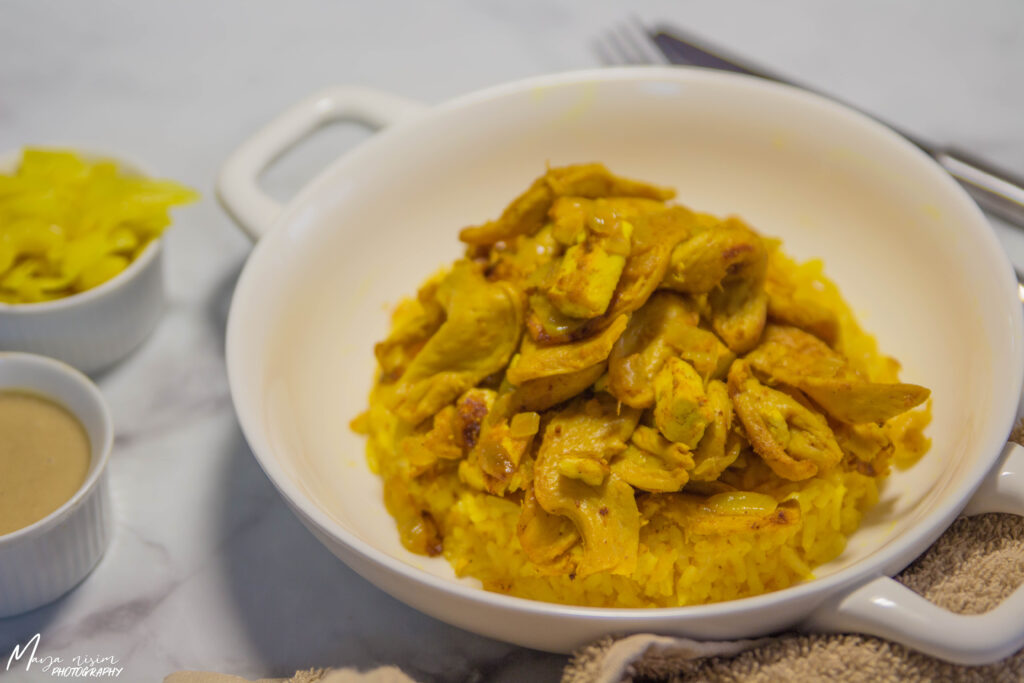 בשבועות האחרונים סביר להניח ששמעתם כמה פעמים את השם "יובה". יובה הוא חלבון סויה מיובש, הטעם שלו שונה לגמרי מטופו או משבבי סויה (שבד"כ עושים מהם בולונז), למרות ששלושתם עשויים מסויה. אפשר להשיג אותו בתור מקלות ובצורת "כנפי עוף", הוא מתנהג בבישול לדעתי בצורה דומה לשבבי סויה, משרים אותו כמה דקות במים חמים והוא מתנפח. עד לאחרונה היה קשה להשיג את היובה בישראל, אבל כעת היא צצה במקומות רבים וכבר נהיה יותר קל. החלטתי להכין מוקפץ בסטייל מעורב ירושלמי טבעוני עם טופו, בצל ויובה. המעורב הירושלמי בד"כ עשוי מנתחי בשר. לי יצא לטעום ממנו בכמה מסעדות טבעוניות שכל אחת מהן לקחה אותו לכיוון שלה, ברוב המקומות שניסיתי אותו הוא היה מוקפץ עם כמה סוגים של בשר, בצל ותיבול צהבהב והיה מוגש לצד אורז או בתוך פיתה/לאפה וכמובן, עם הרבה טחינה. אני החלטתי להכין אותו על מצע אורז עם תיבול של כורכום ופפריקה. 😊